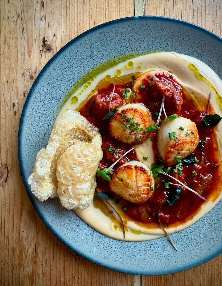 Brilliant work, as ever, HT. I see that from today until 13th Feb (if not beyond!), Holm is launching a new Set Menu in collaboration with the @goodfoodguideuk which is £19 for two courses or £25 for three - cheaper than when we first opened in 2021! - and available for lunch Weds-Sat and for dinner on Weds & Thurs .. happiness and for Rupert, below, weighs in just below his cut off mark if he skips pudding.
