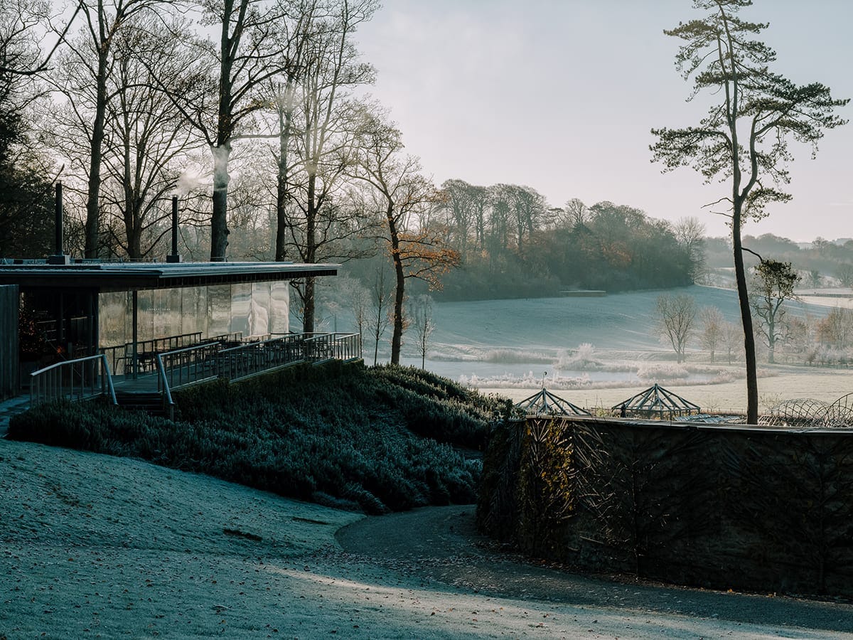 The cafe, like the rest of the estate, is farm-to-table at its core. In other words, whatever’s growing in the garden is whatever’s on the menu. The aesthetic is on the lines of ‘museum canteen’, but with objects of ruralcore like pickled veg from the kitchen garden out front. Not to mention there’s a bloody great tree trunk through the middle of it.